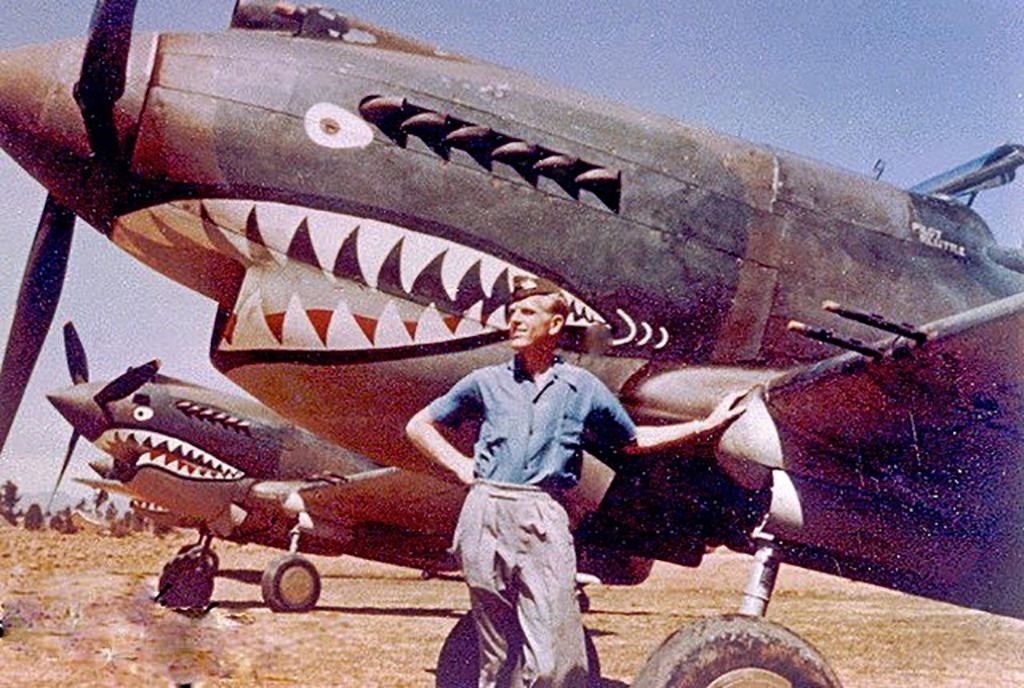 這是在二戰(zhàn)時(shí)期的昆明巫家壩機(jī)場,一名飛虎隊(duì)隊(duì)員在涂裝有“鯊魚嘴”標(biāo)志的戰(zhàn)斗機(jī)前留影的資料照片。新華社發(fā)