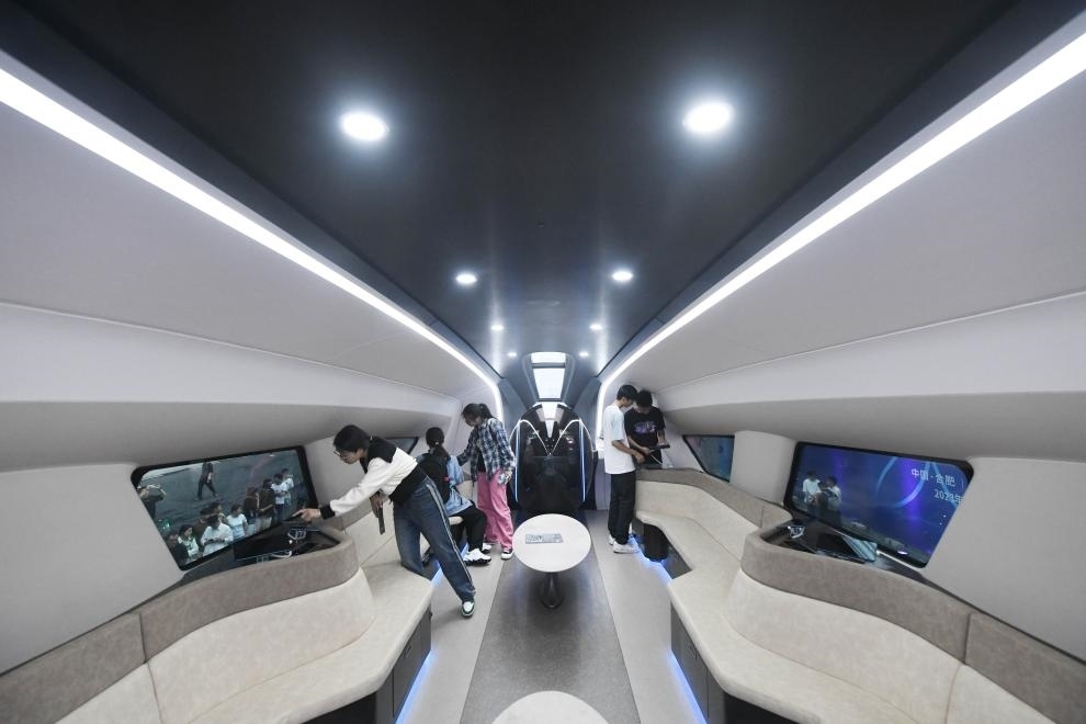 9月20日,在2023世界制造業(yè)大會上,觀眾近距離了解時速600公里高速磁浮交通系統(tǒng)。新華社記者 張端 攝