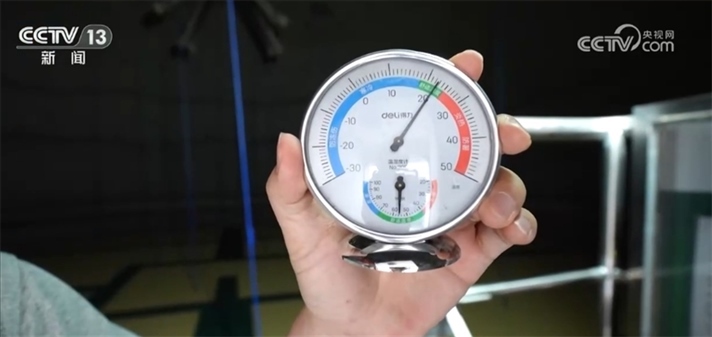 我現(xiàn)在是在氣膜倉(cāng)的頂部,此刻倉(cāng)外的溫度是30℃左右,我們?cè)俚絺}(cāng)內(nèi)看一下。一進(jìn)來(lái)就感覺倉(cāng)里邊一股涼氣襲人,我們來(lái)看這個(gè)溫度計(jì)上顯示此刻的溫度大概是在22℃,也就是說(shuō)倉(cāng)內(nèi)外的溫差有8℃左右,保溫性能還是非常明顯的。