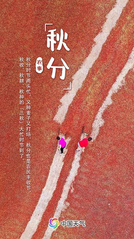 中國天氣網(wǎng)訊 “金氣秋分,風(fēng)清露冷秋期半?!苯裉欤?月23日)我國迎來了秋分節(jié)氣。秋分是秋季的第四個節(jié)氣,天高云淡,桂蕊飄香,秋風(fēng)拂過,送來豐收的味道,農(nóng)田里滿是忙碌的身影。秋分也是農(nóng)民豐收節(jié),中國天氣網(wǎng)推出常年秋分節(jié)氣期間全國秋收地圖,看哪里五谷豐登、農(nóng)事繁忙。