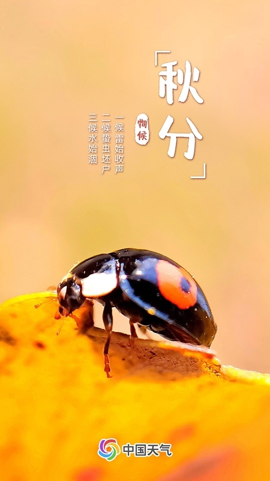 秋分有三候,一候雷始收聲;二候蟄蟲坯戶;三候水始涸。秋分時節(jié)雷聲逐漸終結(jié),蟄居的小蟲開始藏入穴中,河流和湖泊水量變少。