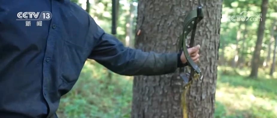 紅松樹長到15年的時候開始結果,可以持續(xù)結果到百年以上。要在高大筆直的樹干上自由攀爬,除了需要敏捷的身手和豐富的經(jīng)驗之外,還需要借助一些工具。