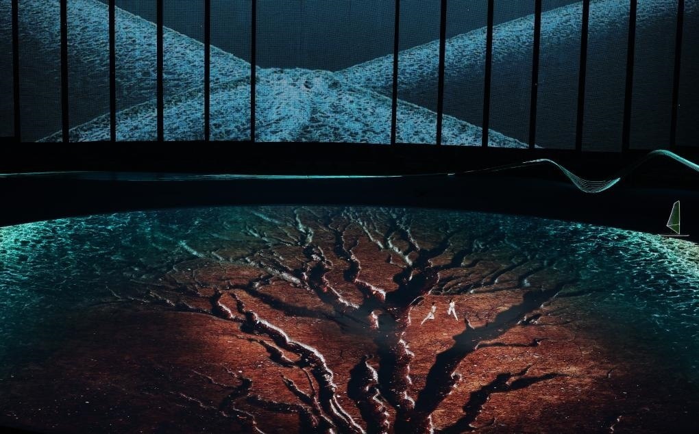 裸眼3D、AR數(shù)字穹頂、3D雙威亞、流體計算和185米寬、15米高的網(wǎng)幕等技術(shù),實(shí)現(xiàn)了立體美學(xué)和東方美學(xué)的融合,也實(shí)現(xiàn)了技術(shù)和藝術(shù)的雙向奔赴。