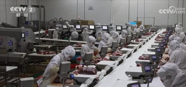 內(nèi)蒙古某公司生產(chǎn)負責人 仝林:每天有近100噸的產(chǎn)品發(fā)往上海、廣州等國內(nèi)各大中小城市及線上平臺,產(chǎn)品主要是冰鮮牛肉和深加工產(chǎn)品。