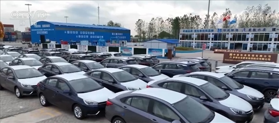 總臺(tái)央視記者 劉柏煊:這樣一個(gè)76立方米的集裝箱就是這場改革的一個(gè)抓手。出口汽車一出廠就被裝進(jìn)這樣的集裝箱,一個(gè)箱可以裝三輛車,在蕪湖港這樣一個(gè)內(nèi)陸港就能辦好“出國”的手續(xù),接著就等待貨船從這里將它們一路沿著長江送到上海洋山港,然后直接出海。