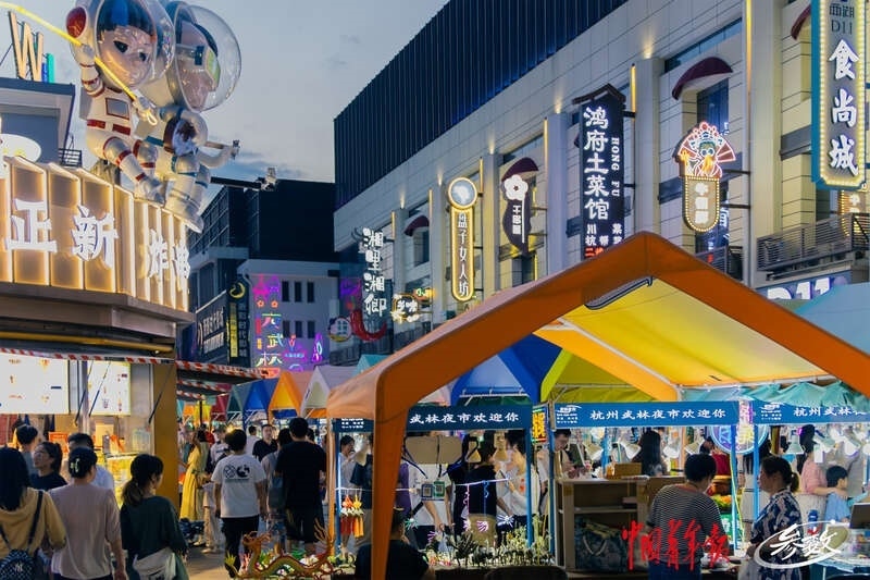 周末的傍晚,杭州武林夜市人流漸漸多了起來(lái)。實(shí)習(xí)生 汪苗/攝