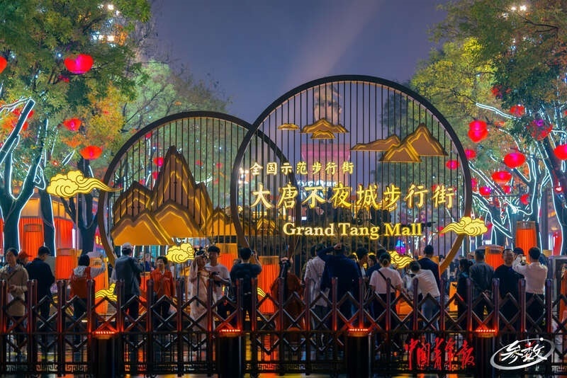 在西安,大唐不夜城步行街華燈初上,人頭攢動(dòng)。中青在線記者 白楊/攝