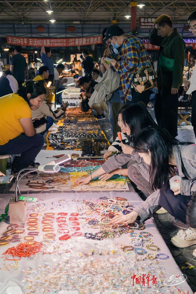 夜幕降臨,北京潘家園舊貨市場(chǎng)內(nèi)的周三夜場(chǎng)開(kāi)啟,攤位上亮起了一盞盞照明的小燈,很多年輕人正在攤位前選購(gòu)商品。實(shí)習(xí)生 邱嵐/攝