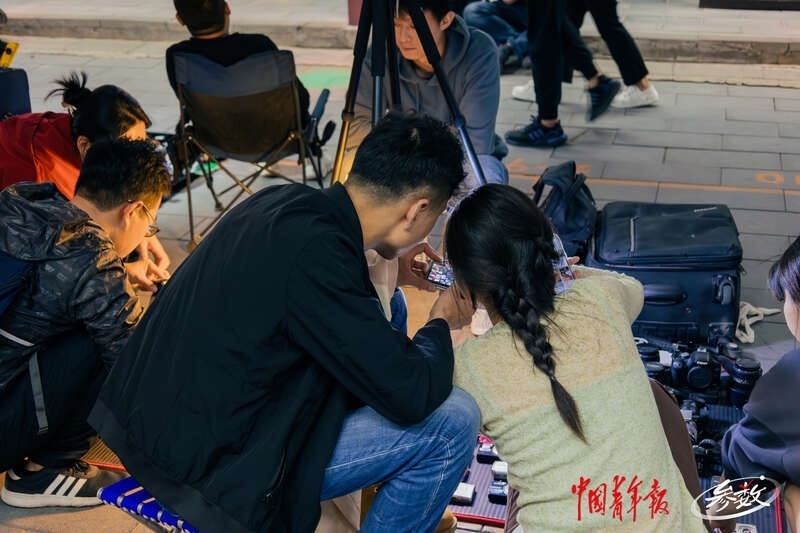 在西安大唐不夜城步行街內(nèi),來(lái)往游客正在觀看互動(dòng)表演。中青在線記者 白楊/攝