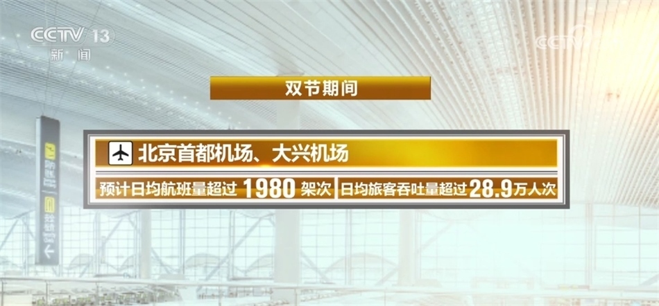 ?????? 民航方面,“雙節(jié)”期間,北京首都機場、大興機場預(yù)計日均航班量超過1980架次,日均旅客吞吐量超過28.9萬人次。