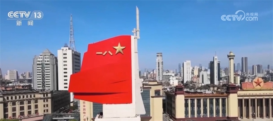 這里是江西省南昌市中心的八一廣場,八一南昌起義紀念塔巍然矗立,塔頂有一面用棗紅色磨光花崗石做成的八一軍旗,形象地表現(xiàn)南昌起義開始中國共產(chǎn)黨獨立領導武裝斗爭、人民軍隊從此光榮誕生這一偉大主題?!澳喜穷^的槍聲”如“劃破夜空的一道閃電”,從此軍旗獵獵向前進。