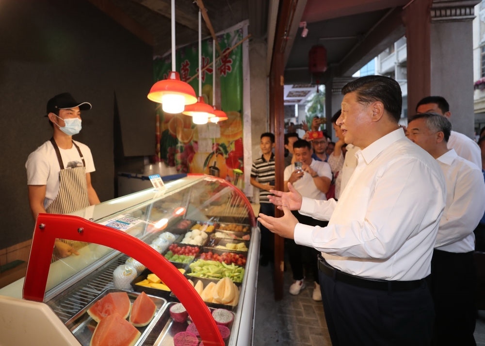 這是7月6日上午,習近平在蘇州平江歷史文化街區(qū)考察。