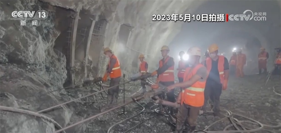 總臺記者 劉文杰:現(xiàn)在是5月10日,工人們正在進行的作業(yè)是對隧道的支護進行拆換,整個拆換作業(yè)現(xiàn)在只剩最后的30米,可以說,整個隧道的建設也進入了沖刺階段。