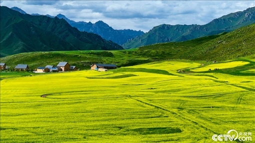 2023年7月14日,甘肅張掖,萬(wàn)畝油菜花田進(jìn)入盛花期,金色的花海美不勝收。