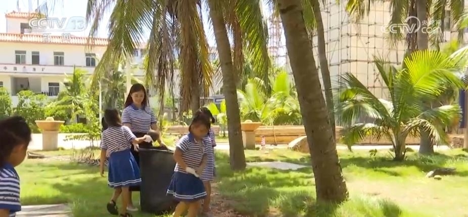每周三的下午,海南三沙市永興學校的孩子們都會迎來他們的愛島日活動,這位帶著孩子們撿拾垃圾的老師就是吳泉穗。