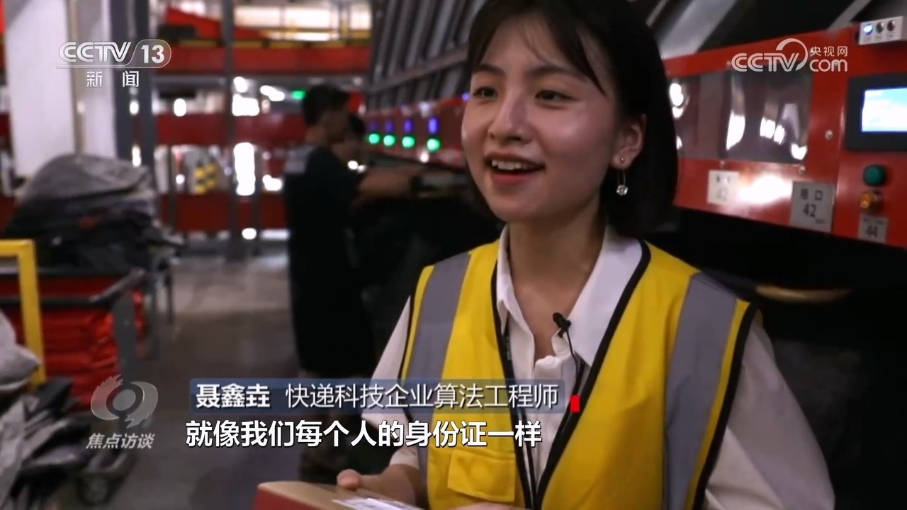快遞科技企業(yè)算法工程師聶鑫垚:“像這一票件它都有自己的面單,就像我們每個(gè)人的身份證一樣,然后上面有一維碼,還有二維碼。當(dāng)快遞經(jīng)過一個(gè)叫六面掃的設(shè)備的時(shí)候,就可以把碼掃描出來,這個(gè)碼里面會(huì)涵蓋快件的生命信息?!?/p>