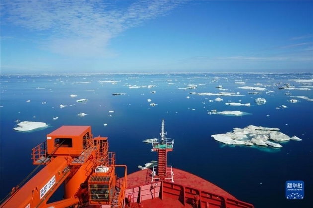 中國第13次北冰洋科學(xué)考察隊(duì)穿越北極圈。