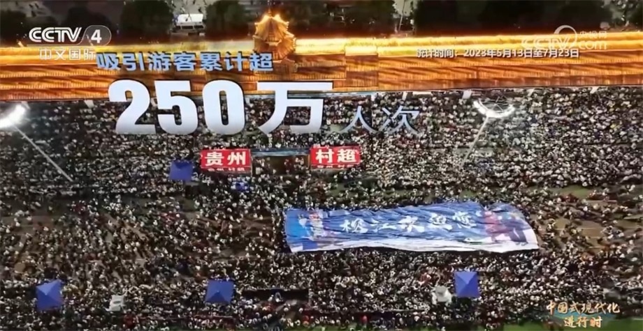 在貴州省黔東南州榕江縣的這個(gè)夏天,一場(chǎng)村民自發(fā)組織的“村超”鄉(xiāng)村足球聯(lián)賽正在火熱進(jìn)行著,歡呼聲響徹球場(chǎng),五萬(wàn)人體育場(chǎng)座無(wú)虛席。