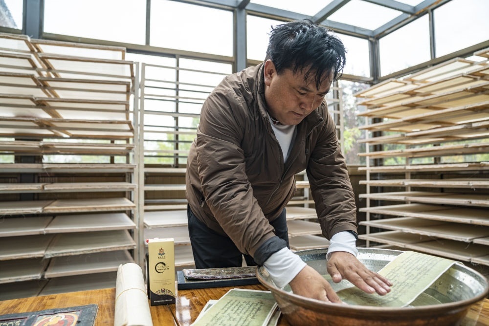 ? ? ? 為了讓村民安居樂業(yè),當(dāng)?shù)爻闪⒘四襄劝屯咄莞虏脊に嚻忿r(nóng)民專業(yè)合作社,集藏紙生產(chǎn)、旅游參觀體驗(yàn)為一體,通過創(chuàng)新生產(chǎn)藏紙印刷產(chǎn)品等方式,讓30余名村民在家門口實(shí)現(xiàn)穩(wěn)定就業(yè)。據(jù)了解,該合作社2022年全年銷售額超過200萬元。