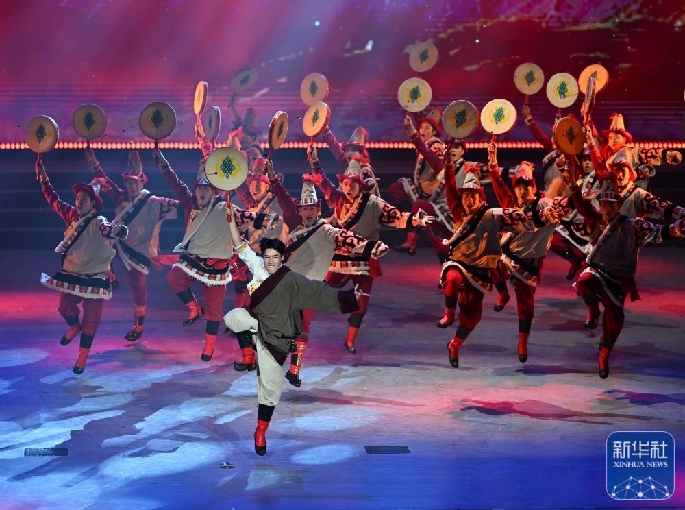 ↑7月29日,演員在聯(lián)歡會現(xiàn)場表演舞蹈。新華社記者 蔡湘鑫 攝