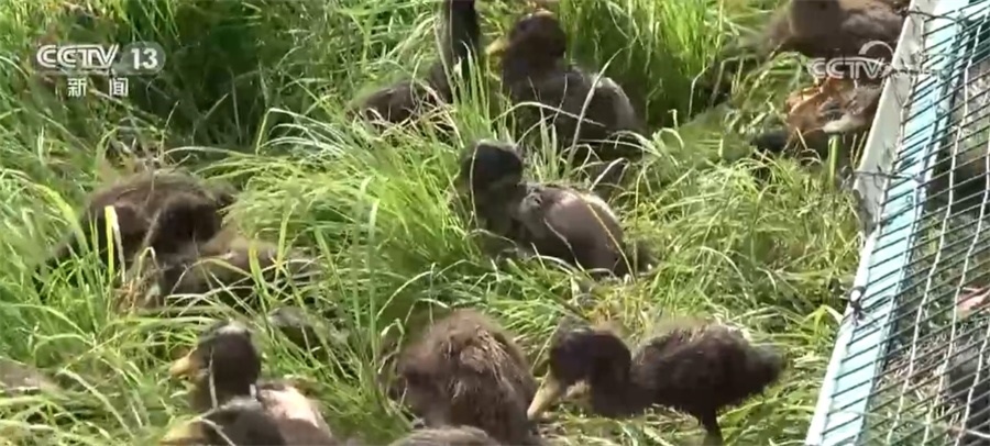 隨著《希望的田野》音樂聲響起,鴨舍門緩緩打開,小鴨子們已經(jīng)開始迫不及待地走出鴨舍,沖進(jìn)稻田地。