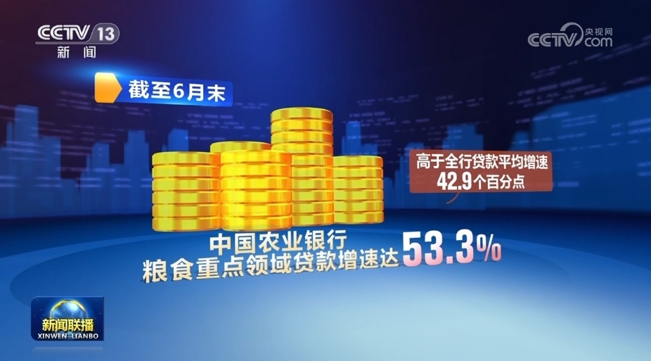 以主題教育為契機,農(nóng)業(yè)銀行圍繞農(nóng)業(yè)強國建設(shè)持續(xù)發(fā)力。截至6月末,糧食重點領(lǐng)域貸款增速達53.3%,高于全行貸款平均增速42.9個百分點。糧食安全服務入選農(nóng)業(yè)農(nóng)村部金融支農(nóng)十大創(chuàng)新模式。