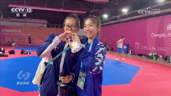 成都大運(yùn)會,是青春的盛會,也是一次友誼的盛會。來自世界各國的大學(xué)生們,一起競技,一起生活。他們交流著彼此的運(yùn)動(dòng)技巧,同時(shí)也交流著彼此的文化和觀點(diǎn)。正在中國地質(zhì)大學(xué)就讀的跆拳道運(yùn)動(dòng)員羅妙溢,在成都大運(yùn)會中遇到了自己的偶像——東京奧運(yùn)會跆拳道女子49公斤級冠軍、泰國選手班妮巴。在自己不比賽的時(shí)候,羅妙溢會專門來給班妮巴加油。