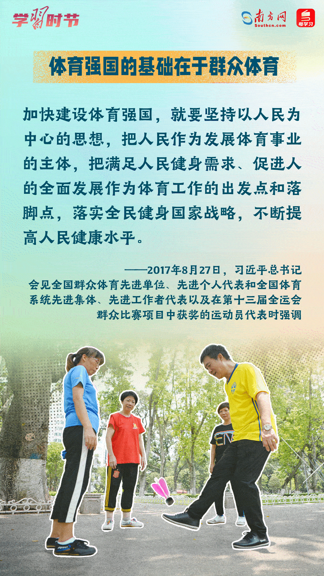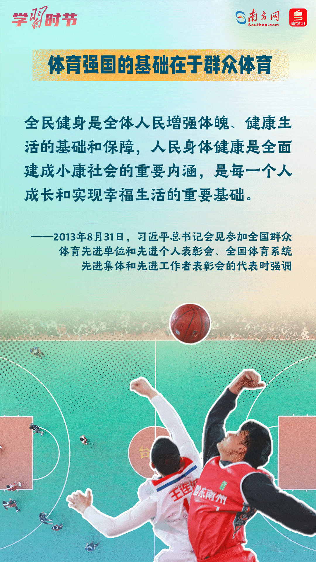 今年8月8日是我國第15個(gè)“全民健身日”,讓我們學(xué)習(xí)領(lǐng)悟習(xí)近平總書記關(guān)于推進(jìn)全民健身的重要論述,一起加入全民健身的隊(duì)伍中,通過健身收獲健康、收獲快樂!