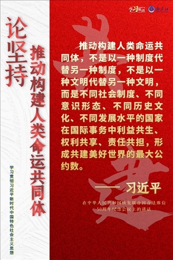 習近平總書記強調,我們要與世界各國人民同心協(xié)力,構建人類命運共同體,建設持久和平、普遍安全、共同繁榮、開放包容、清潔美麗的世界。