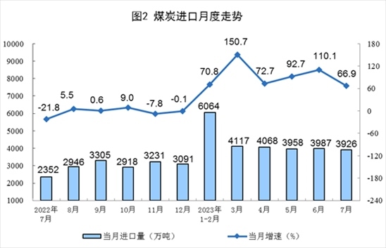 1—7月份,生產(chǎn)原煤26.7億噸,同比增長(zhǎng)3.6%。進(jìn)口煤炭2.6億噸,同比增長(zhǎng)88.6%。