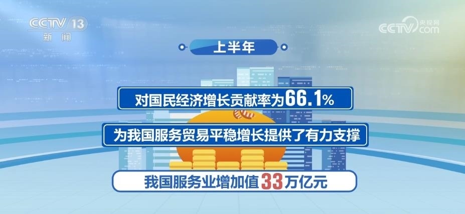 2023年以來,國(guó)民經(jīng)濟(jì)持續(xù)穩(wěn)定恢復(fù),服務(wù)業(yè)保持較快增長(zhǎng)。上半年,我國(guó)服務(wù)業(yè)增加值33萬億元,同比增長(zhǎng)6.4%,占GDP比重為56%,高于上年同期1.6個(gè)百分點(diǎn),對(duì)國(guó)民經(jīng)濟(jì)增長(zhǎng)貢獻(xiàn)率為66.1%,為我國(guó)服務(wù)貿(mào)易平穩(wěn)增長(zhǎng)提供了有力支撐。