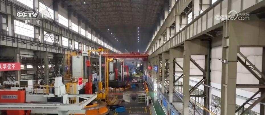 總臺記者 蔣林:我現(xiàn)在就是在位于四川德陽的東方電機的生產(chǎn)車間,這里也是目前中國最為重要的能源裝備的制造基地?,F(xiàn)在一天全國所發(fā)的電量里面,每4度有1度就來自于這里的設備。而且根據(jù)我們掌握的最新的生產(chǎn)數(shù)據(jù),也能夠感覺到目前中國能源發(fā)展的新趨勢。截止到2023年的6月底,在過去一年當中,這里所生產(chǎn)的設備里有90%都是清潔能源的設備。比如,我身旁的這個大家伙,它是華龍一號發(fā)電機組的轉軸,而像這樣的大塊頭在這個廠房里面比比皆是。