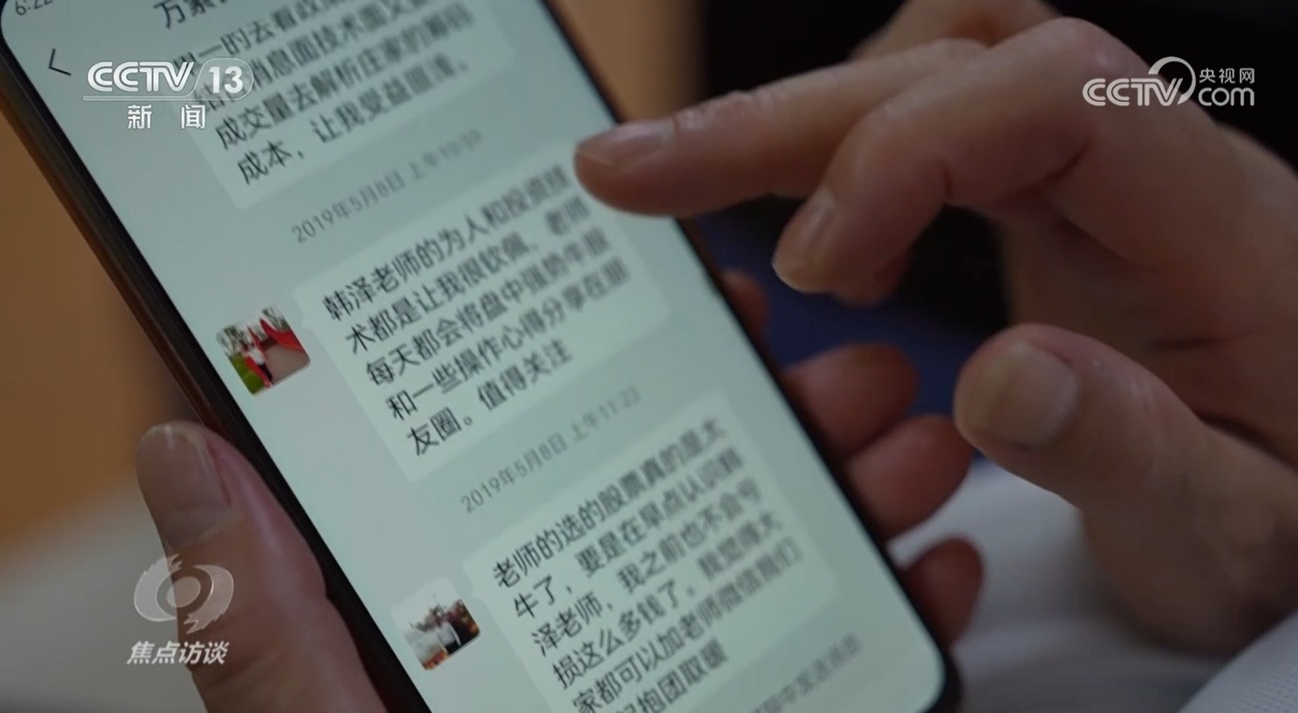 王敏:“比如說客戶發(fā)過來問這只股票怎樣分析,我們就復(fù)制這個(gè)客戶的話,然后發(fā)送到專門有個(gè)群,是其他團(tuán)隊(duì),就會(huì)有人回復(fù),我們就用‘韓澤’這個(gè)號(hào)回復(fù)人家?!?/p>