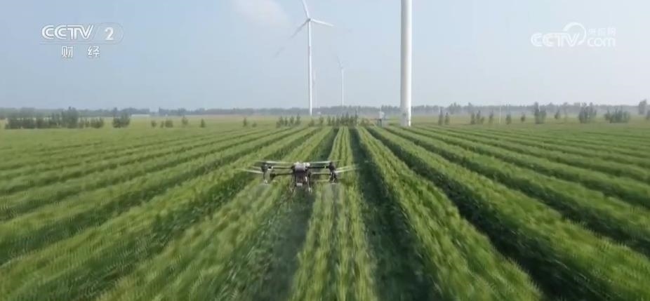 在山東省德州市武城縣,2萬畝復(fù)合種植的玉米和大豆長勢旺盛。李希軍2023年種植的1600多畝地,采用了玉米4行、大豆4行,兩種作物帶狀間作模式。他告訴記者,這段時間當(dāng)?shù)亟涤觐l繁,部分地塊出現(xiàn)褐斑病、玉米螟蟲等病蟲害。李希軍第一時間請來農(nóng)技人員和飛防隊進(jìn)行針對性防控作業(yè)。