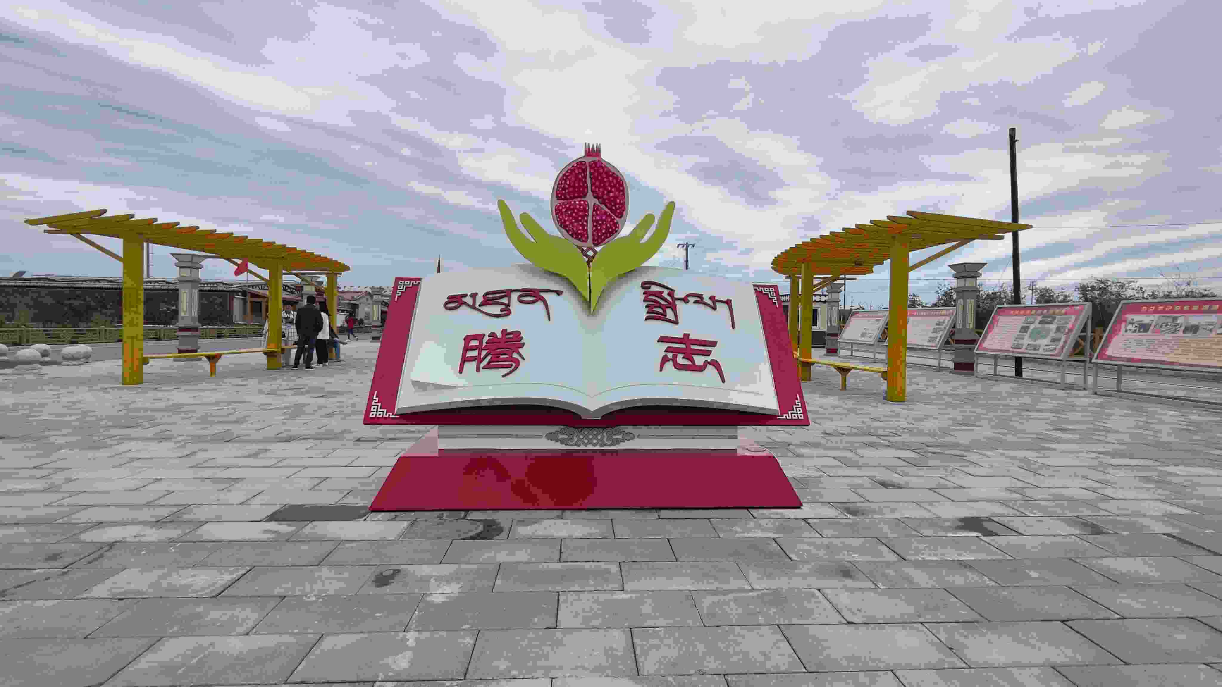 這些向好的變化離不開每一位村民的團結(jié)友愛、互幫互助。村口的廣場中間有一本打開的書,書頁上一雙手托舉著一個鮮艷的石榴,這就是果洛藏貢麻村新修建的“騰志”廣場。“騰志”在藏語中意為“團結(jié)”,這也寓意著各民族像石榴籽一樣緊緊抱在一起,共育團結(jié)花,共享幸福果。