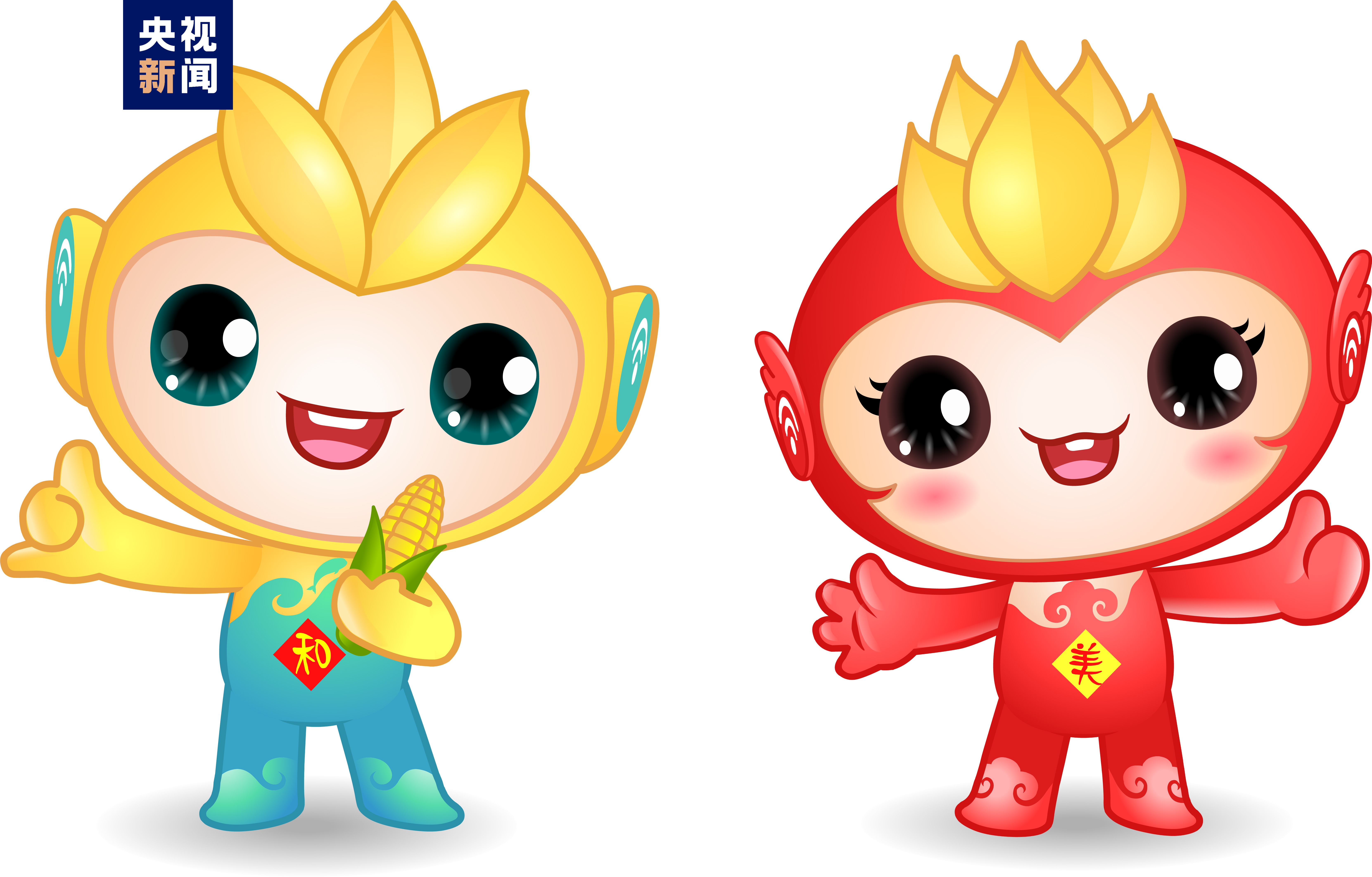此外,今年中國農(nóng)民豐收節(jié)的吉祥物是“和和”“美美”兩個卡通IP形象,表達了億萬農(nóng)民甜甜美美的豐收喜悅、和和睦睦的幸福生活。IP卡通形象的整體設計,以三大主糧“稻谷、麥穗、玉米”為造型元素,突出豐收節(jié)屬性,融入傳統(tǒng)文化符號與現(xiàn)代信息符號,傳遞豐收、喜悅、吉慶和農(nóng)業(yè)現(xiàn)代化等寓意。其中,“和和”是一個男孩形象,頭上三粒稻谷,既代表種子,又代表三生萬物,繁榮不息。藍色波浪代表長江,江豚魚躍而上,寓意長江之畔,魚米之鄉(xiāng),風調雨順?!懊烂馈笔且粋€女孩形象,頭上五顆麥粒,寓意代表五谷豐登,表達了對農(nóng)民的最美好祝愿,融入了翅膀元素,昭示著中國農(nóng)業(yè)展翅騰飛,開創(chuàng)新未來。吉祥物的眼睛和耳朵上分別含有信息、數(shù)字科技元素,寓意以科技眼、智慧耳賦能現(xiàn)代農(nóng)業(yè)騰飛,反映了科技賦能、智慧富農(nóng)的新時代現(xiàn)代農(nóng)業(yè)特征。色彩以黃色和紅色為主,分別代表耕地和喜慶,也是豐收黃和中國紅,是農(nóng)民和豐收的最直觀體現(xiàn)。起名“和和、美美”,表達了億萬農(nóng)民喜氣洋洋的豐收喜悅、幸福和美的美好生活。