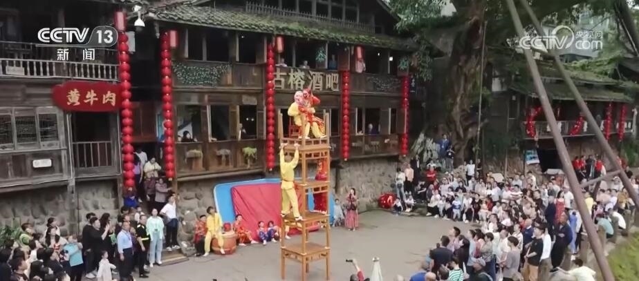 在四川洪雅縣的柳江古鎮(zhèn),當(dāng)?shù)赝瞥鰧?shí)景演出、經(jīng)典誦讀、非遺巡演等多項(xiàng)活動(dòng)。游客們漫步于山水如畫(huà)的詩(shī)意古鎮(zhèn)中,觀看水上實(shí)景演出,感受非遺民俗魅力,歡度假期。