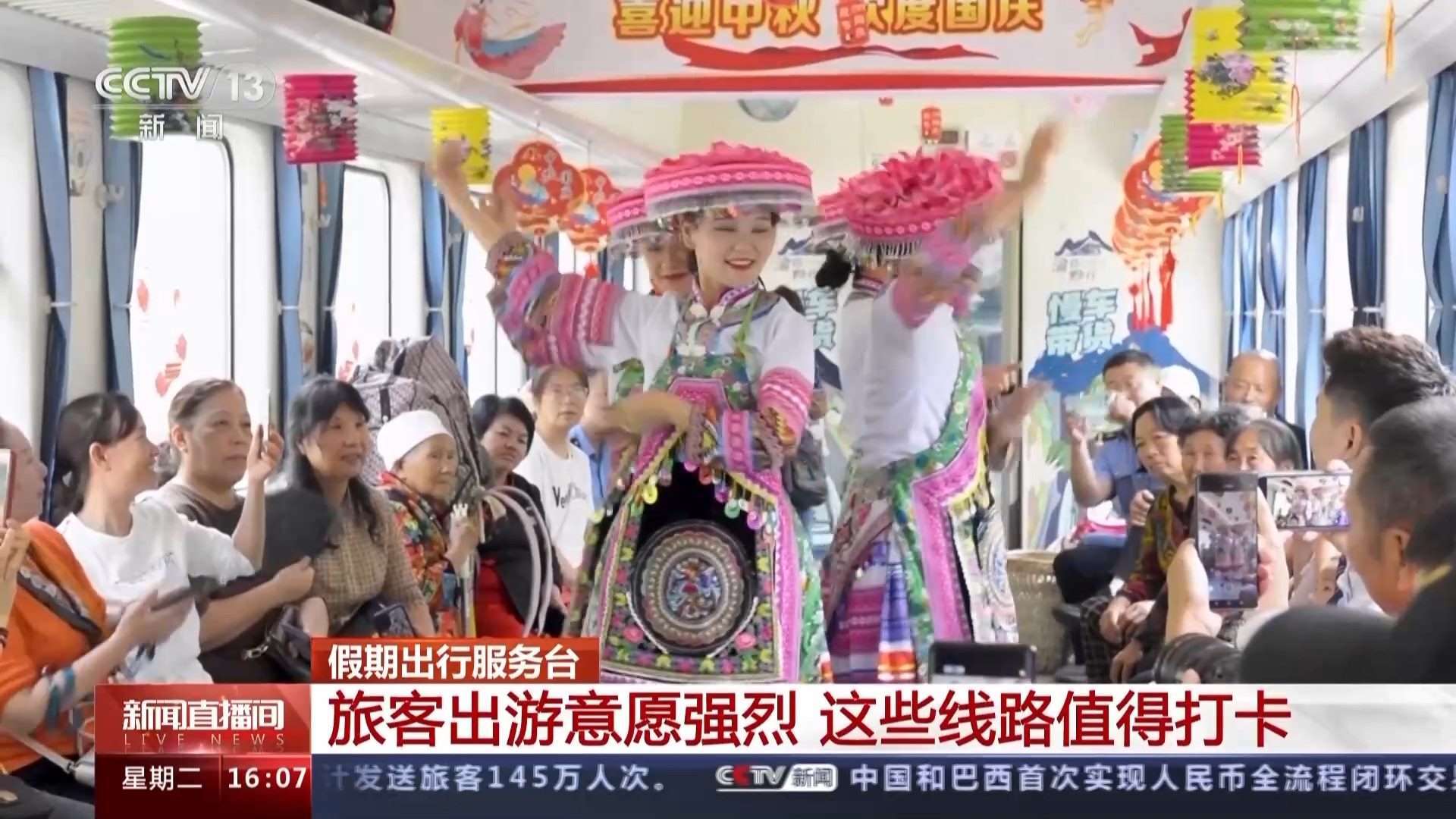 這趟列車抵達(dá)貴陽(yáng)后,旅客還能轉(zhuǎn)乘不久前開通的另一條高鐵線路——貴南高鐵,前往荔波小七孔、瑤山古寨等景區(qū)游玩。為適應(yīng)火爆的旅游客流,現(xiàn)在貴南高鐵每天開行76列。此外,針對(duì)假期市民出游意愿強(qiáng)烈,鐵路還開行成都至大涼山的“熊貓專列”,貴州遵義至重慶西的“民俗文化慢火車”。