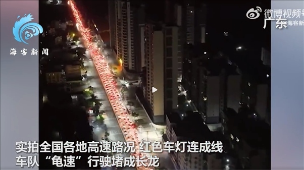 據海客新聞官方微博,10月4日,中秋國慶假期進入第6天,多地陸續(xù)迎來返程高峰。實拍全國各地高速路況,紅色車燈連成線,車隊“龜速”行駛堵成長龍。有網友曬出高速路況畫面表示“特意提前三天回去,沒想到又堵路上了?!薄ⅰ?strong>帶回的特產都要在路上吃完了”。