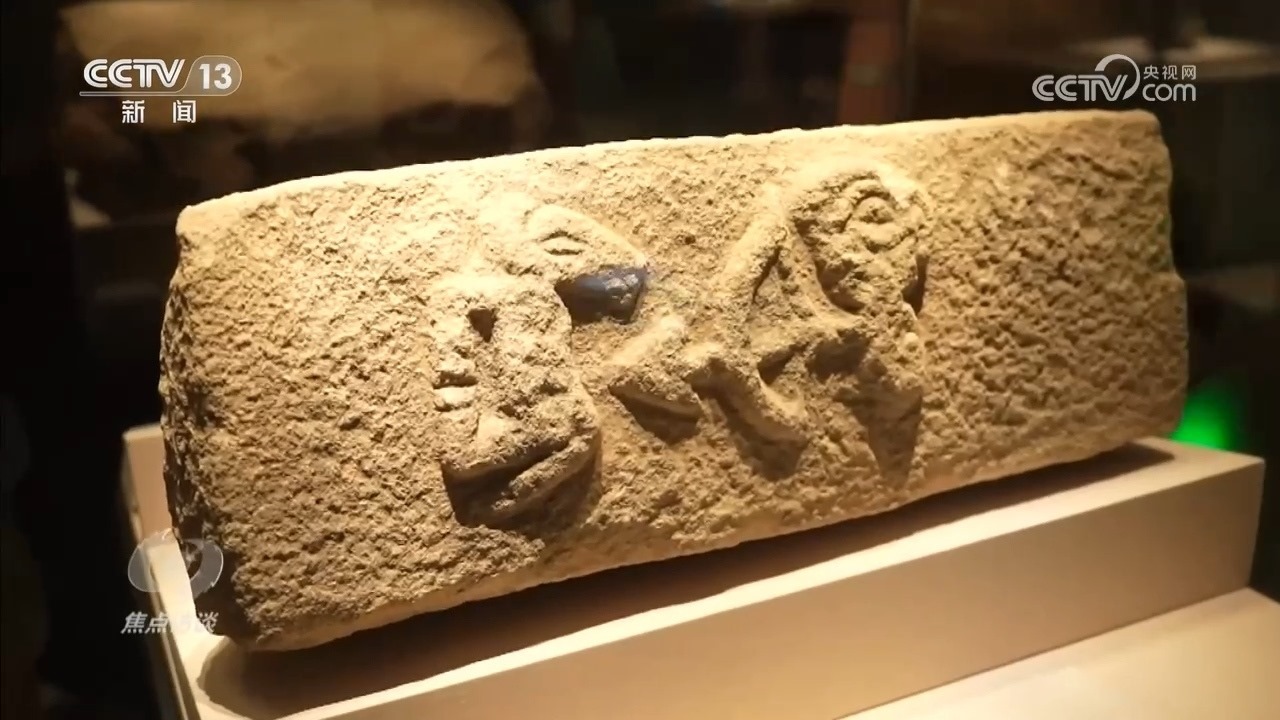 龜甲出土于河南省漯河市舞陽(yáng)縣賈湖遺址,當(dāng)時(shí)遺址內(nèi)發(fā)現(xiàn)17例刻在龜甲、骨器上的符號(hào),內(nèi)容都與占卜相關(guān),被稱為賈湖刻符。符號(hào)圖畫為我們揭開了祖先們當(dāng)時(shí)的生活圖景?!叭松漶R石雕”出土于陜西榆林神木市石峁遺址,在距今約4000年前,先人們以浮雕的方式成圖,一人持弓箭射馬,弓、弦、箭一樣不少。