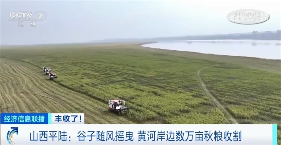 日前,位于山西平陸黃河岸邊的數(shù)萬畝秋糧作物迎來豐收,金燦燦的谷子隨風(fēng)搖曳,忙碌的收割機穿梭田間。我們一起去看看。