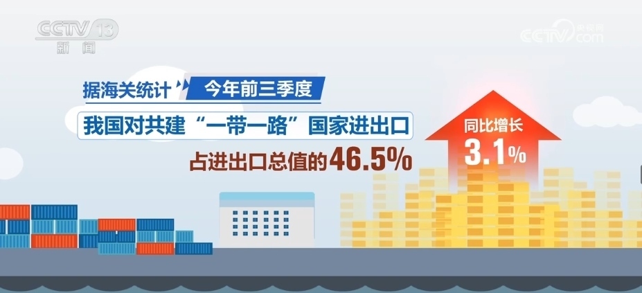 據(jù)海關(guān)統(tǒng)計(jì),2023年前三季度,我國(guó)對(duì)共建“一帶一路”國(guó)家進(jìn)出口同比增長(zhǎng)3.1%,占進(jìn)出口總值的46.5%。