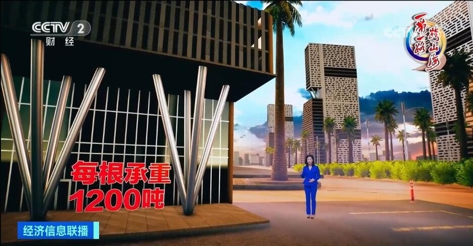 包括標志塔在內(nèi),中國企業(yè)在中央商務(wù)區(qū)共承接了20個高層建筑單體及配套市政工程。20棟高樓間,我們還能看見不少這樣的“樹形柱”,四根向上斜伸的柱子,像一個倒立的金字塔。我身邊就是這種樹形柱,每根柱子承受1200噸重量,相當于在上面站立150頭成年大象,受力卻只集中于底部一點,中國團隊歷經(jīng)3個多月的精密計算與人工調(diào)試,讓這個專屬于埃及的設(shè)計成功澆筑,用堅實的技術(shù)托起了這座未來之城。