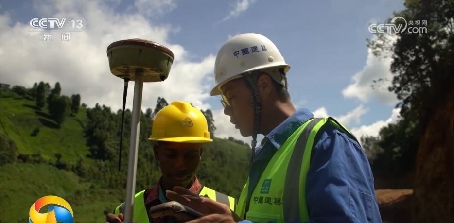 這里是肯尼亞南部高原上的錫卡鎮(zhèn)基戈羅村,施工團隊正在鋪設(shè)供水管線,將壩區(qū)的水引入內(nèi)羅畢城區(qū),解決首都近300萬人的用水問題。正在進行測量工作的中國工程師叫于春雨,旁邊的肯尼亞小伙子是他的徒弟叫王約翰。
