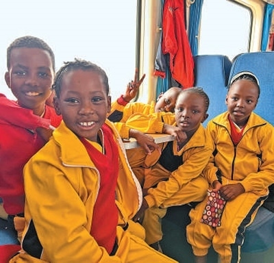 蒙內(nèi)鐵路是中國與肯尼亞共建“一帶一路”標(biāo)志性工程。圖為肯尼亞學(xué)生高興地乘坐列車出行。本報記者 張志文攝