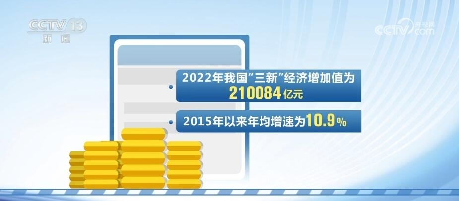 2022年,我國“三新”經(jīng)濟增加值為210084億元,2015年以來年均增速為10.9%,比同期GDP現(xiàn)價增速高2.5個百分點,相當于GDP的比重為17.36%?!叭隆苯?jīng)濟不斷發(fā)展,已成為帶動經(jīng)濟轉(zhuǎn)型升級、增強經(jīng)濟活力的重要力量。