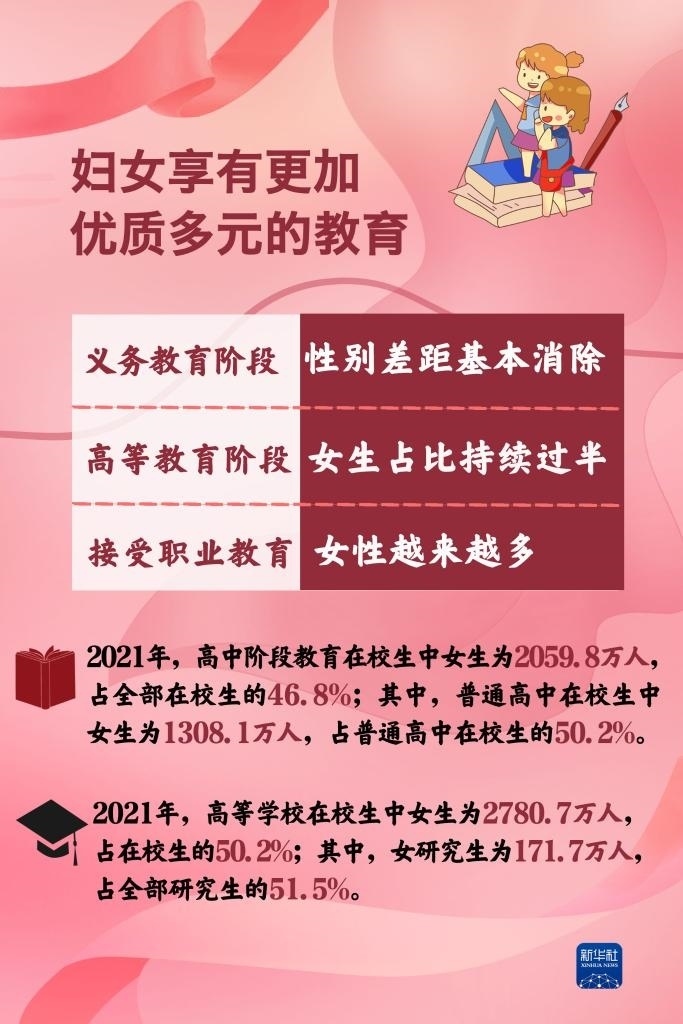 黨的十八大以來,黨對婦女兒童工作的領(lǐng)導(dǎo)全面加強(qiáng),婦女參與經(jīng)濟(jì)發(fā)展的舞臺更為廣闊,參與決策和管理更加廣泛深入,享有更加優(yōu)質(zhì)更加多元的教育……新時(shí)代我國婦女事業(yè)取得了歷史性成就,發(fā)生歷史性變革。