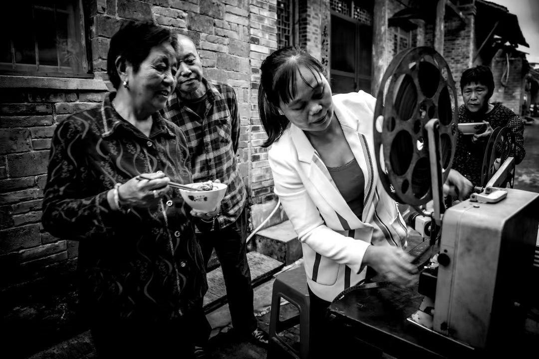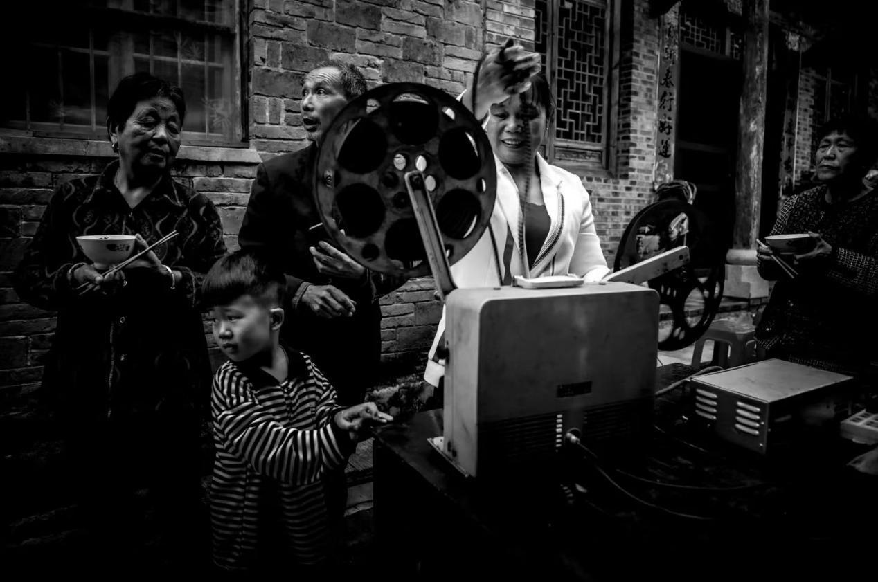 1983年,鄉(xiāng)里成立了電影放映隊,曹毅成了隊長,還參加了電影培訓(xùn)班,扎扎實實地學(xué)了放映技術(shù)、電工等好多課程,成了專業(yè)的放映員。那時片源少,一張片子各個鄉(xiāng)排期輪流放映,讓曹毅最開心的事,就是坐上幾個小時的公交車去縣里拿膠片。有時揣著膠片回來的路上就忍不住想樂,哪回放新電影都像打仗一樣,人山人海,得防著別碰壞了放映機,還得留心會有哪個村連夜來搶放映機?!翱傆幸蝗f人,銀幕前后都是人,背面都有人看。在稻田里面把那稻子割完了以后,電影就在稻場里面放,不然地方不夠大?!笨諝庵酗h著稻谷的香味,不少人會盤腿坐在地上,扎扎實實看完一部電影。