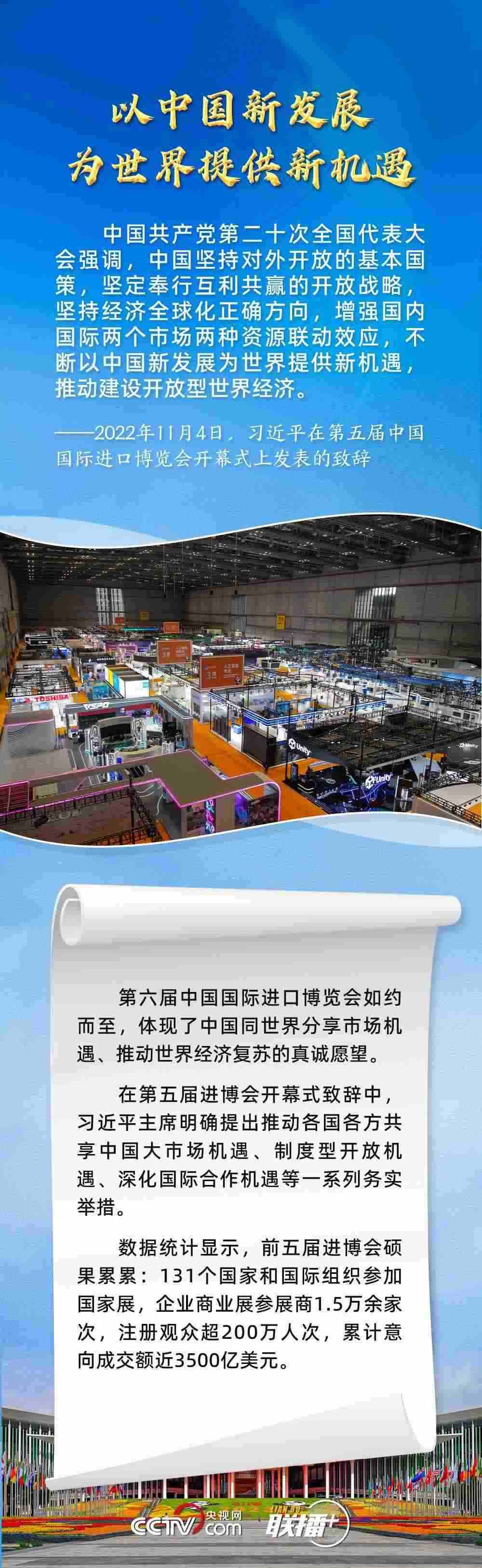 11月5日,第六屆中國國際進(jìn)口博覽會(huì)在上海開幕。習(xí)近平主席在致信中指出,2018年以來,進(jìn)博會(huì)成功舉辦五屆,依托中國大市場優(yōu)勢,發(fā)揮國際采購、投資促進(jìn)、人文交流、開放合作平臺(tái)功能,對(duì)加快構(gòu)建新發(fā)展格局和推動(dòng)世界經(jīng)濟(jì)發(fā)展作出了積極貢獻(xiàn)。