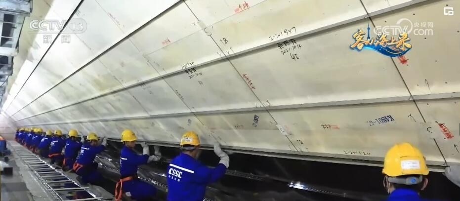 總臺(tái)央視記者 李琳:我現(xiàn)在就來到了一艘正在建造的LNG運(yùn)輸船最核心的液貨艙部分,您看我腳下這種銀光閃閃的鋼板就是能夠承受-163℃的殷瓦鋼,這種薄如紙片的鋼材在2017年以前是不能實(shí)現(xiàn)國(guó)產(chǎn)的。